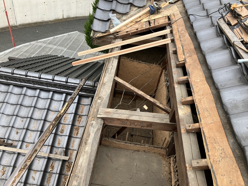 【山口県下関市】雨漏りで屋根下地が腐食し瓦がズレ落ちていた現場を下地から修理しました