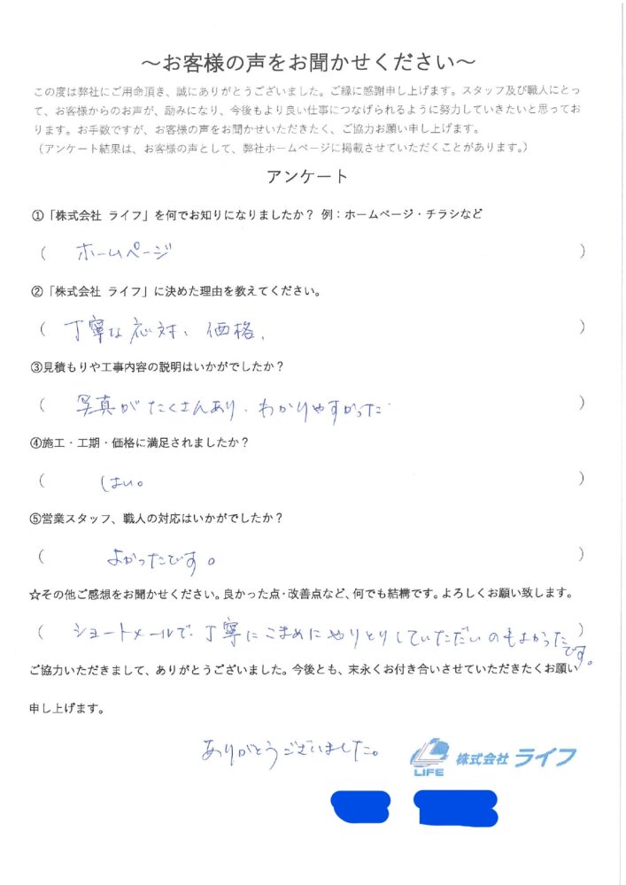 (ショートメールで丁寧にこまかにやりとりしていただいたのもよかったです。ありがとうございました。